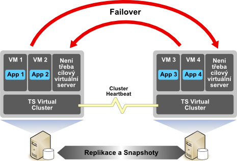 TS V-Cluster je plně automatické, virtualizační řešení serverů a diskového úložiště s vysokoudostupností. Od obvyklých řešení se liší především: